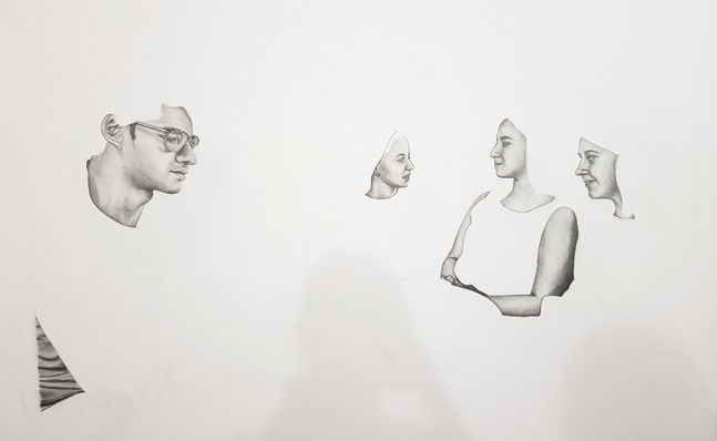 Having originally intended on using moving figures in the projection, I altered my idea to a video inspired heavily by the work of Taylor-Johnson. A separate drawing of two figures (finished to the same standard as the larger drawing) is displayed for a split second over the original drawing in a 'glitch'. This not only plays tricks on the viewers in a similar way to that of Taylor-Johnson's work but introduces the importance of technology.